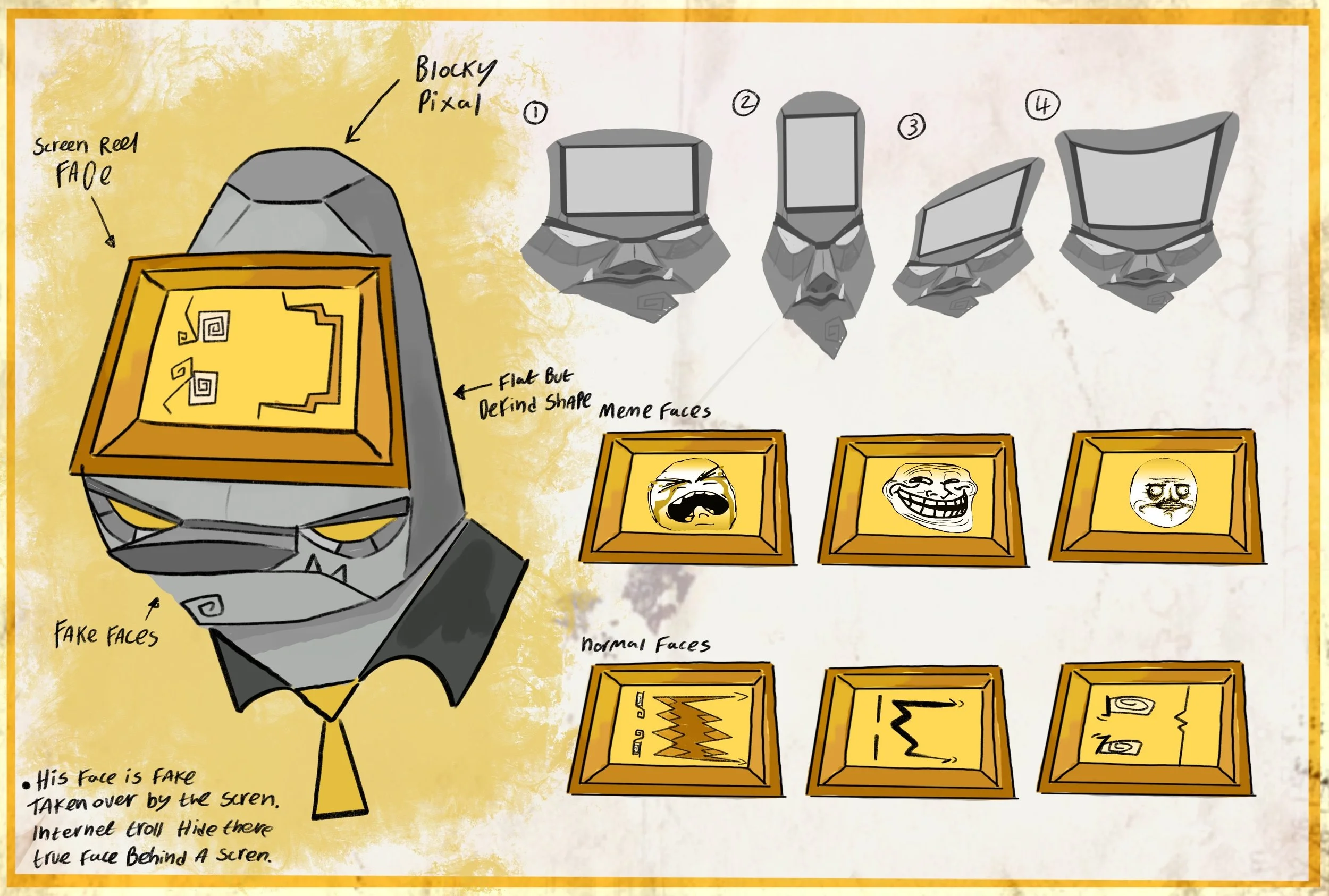 The terrifying tale of The Tiddley- Strongs an original story the project is an adaptation of an original script I have created for a short, animated TV series. The story explores the influence of social media on how it changes our personalities and affects our mental health.